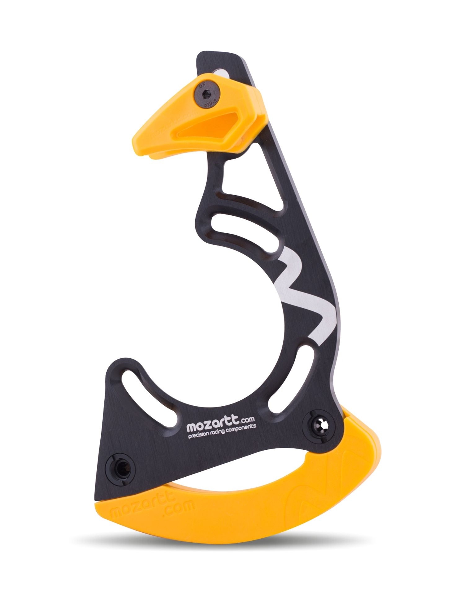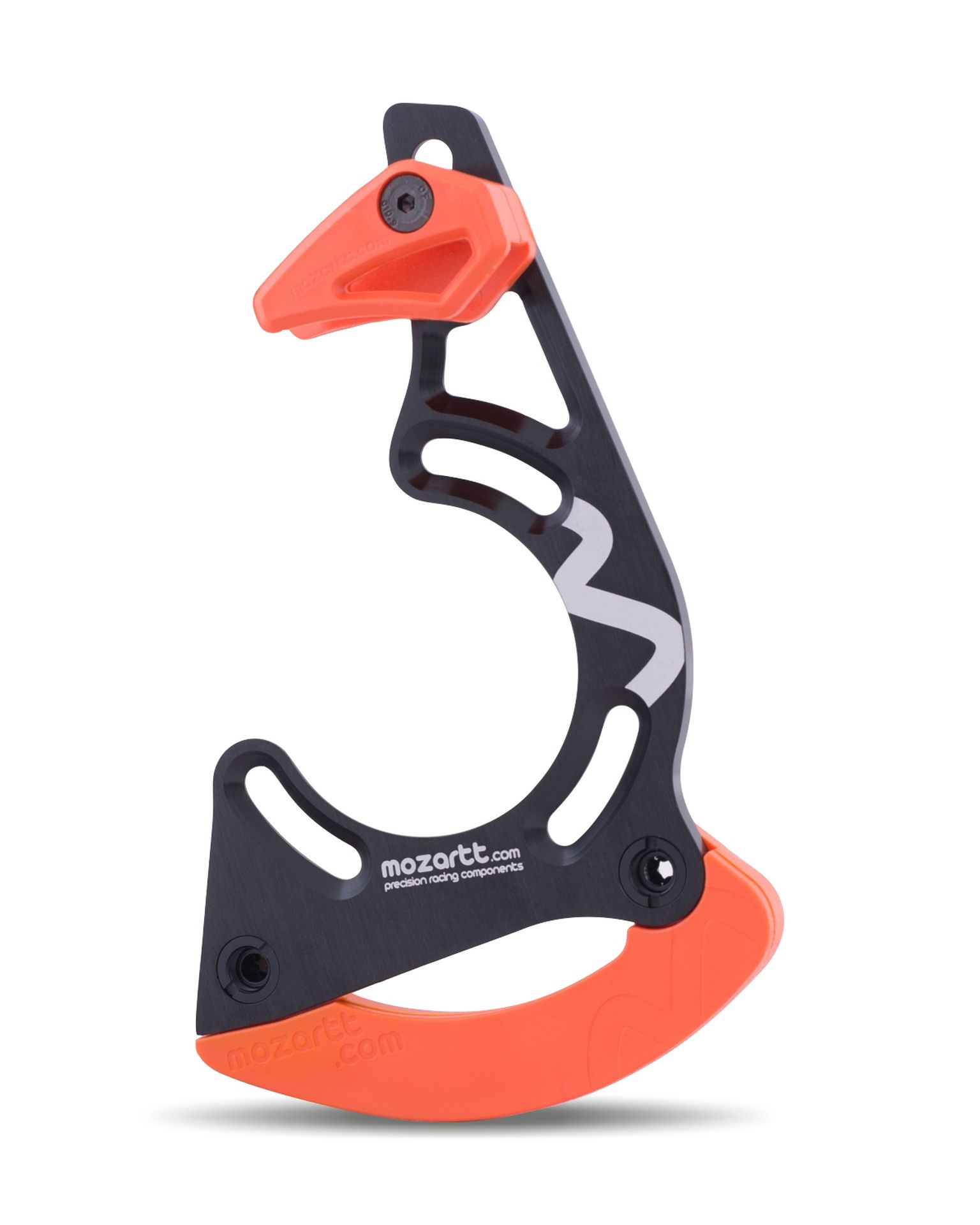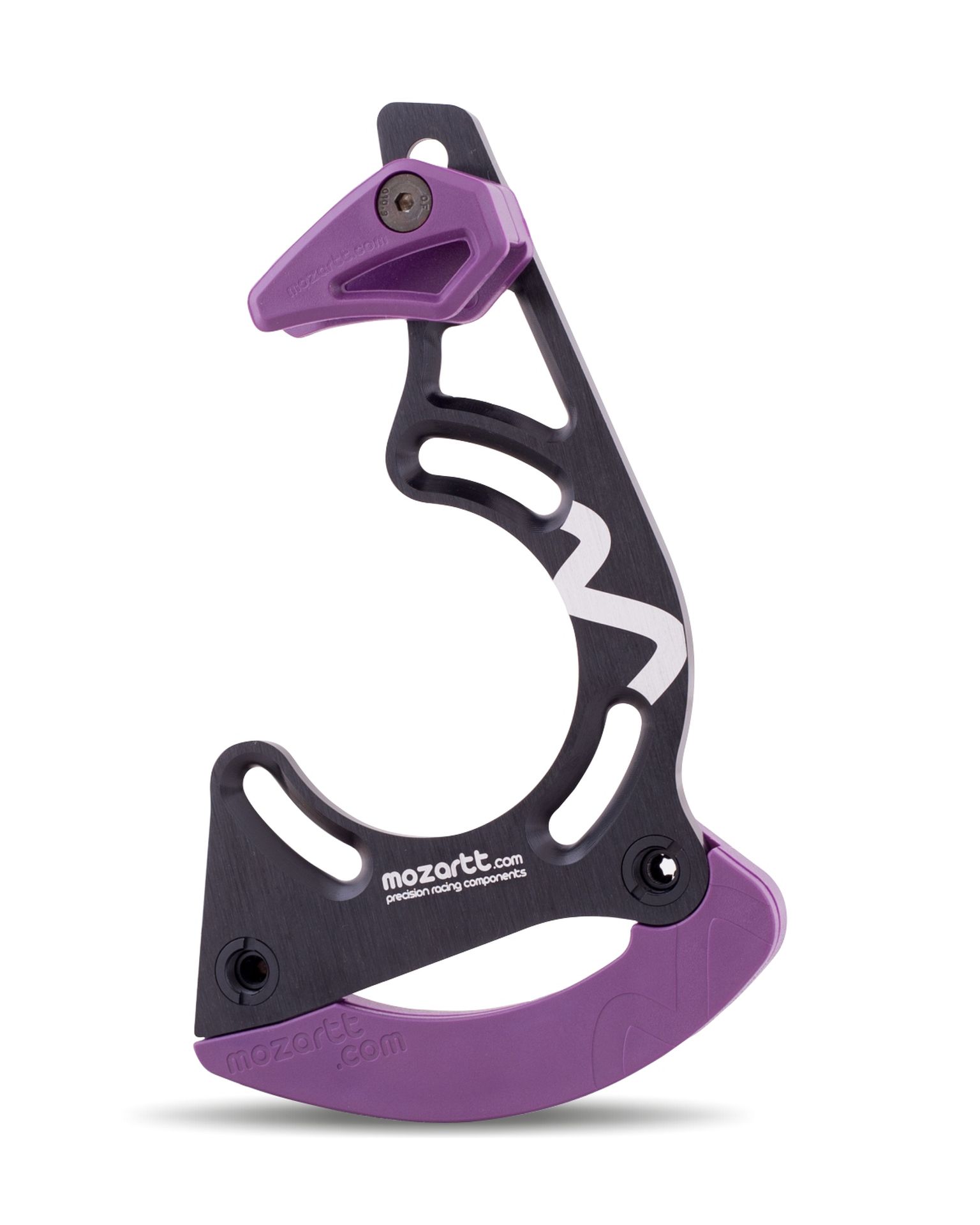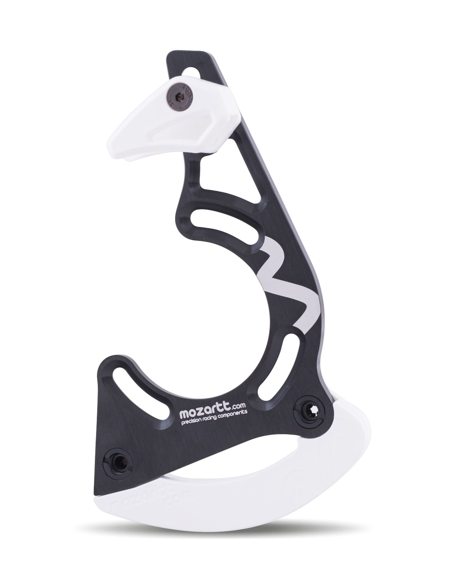 The HXR mozartt.com mountain bike chain guide, a collaborative creation with world-renowned MTB riders such as Darren Berrecloth, Vincent Tupin, and Szymon Godziek, was initially designed for less demanding mtb disciplines like enduro and cross-country. However, its lightweight design (only 75 grams), drivetrain security, and absence of additional rolling resistance quickly propelled it to popularity among World Cup downhill teams.